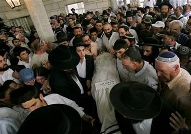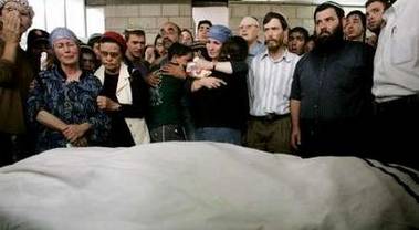 No government official was anywhere to be seen in the mostly Orthodox crowd. A few public figures, including Knesset member Effie Eitam, Rabbi Yitzhak Levy and former Prisoner of Zion Yosef Mendelevich, were present, but the overwhelming majority of mourners were teenagers, many sporting the orange ribbons of solidarity with the dispossessed of Gush Katif.