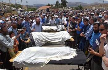 It is 1:30 thousands of us are in the graveyard. We are staring at Meir’s tomb, the only tomb on the site. Meir was murderedabout 9 months ago right outside Itamar. We were hoping that Meir wouldn’t mind being bored for a while. I guess we were wrong. Yoseph, Rachel, and her children were laid to rest beside him. The testimony of our presence goes on.