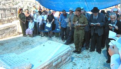 1. Memorial service held on Thursday morning for Meir Lixenberg HYD attended by Harav Livanon, Rabbi of Elon Moreh, seen in the picture. width=