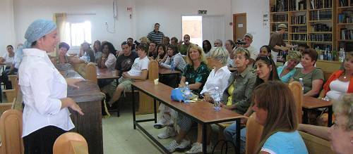 1. Leah addresses a group of 70 people from Fort Meyers Florida that made a special trip to Itamar to express their solidarity with our community. width=