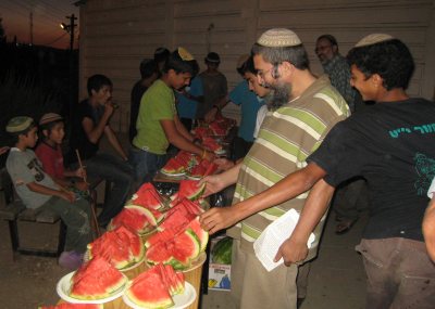 5. The Tisha B’Av fast ended on Itamar with a watermelon treat donated by the Edan family. It is their custom to treat the congregation to watermelon after the long fast of Tisha B’Av. They grow these melons, organically, in one of our many valleys here. There is nothing like the delicious fruit of Eretz Yisrael to restore your energy after a long fast![melon[1] width=](https://friendsofitamar.com/wp-content/uploads/2021/09/melon1.jpg)